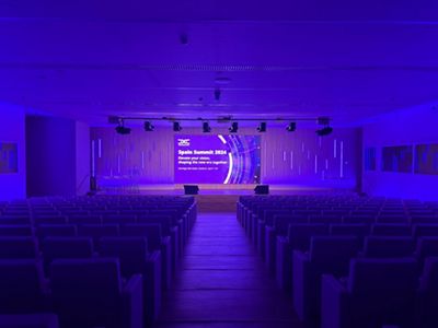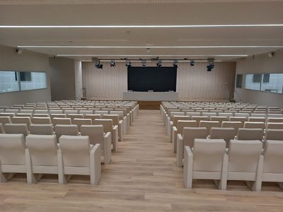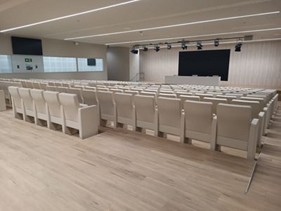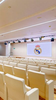 La Sala de Prensa es una sala formato Auditorio que cuenta con 265 butacas fijas, ampliable a 300 y cabinas laterales para instalar traducción simultánea. Cuenta también con un videowall en el escenario. Cada silla dispone de una mesa de apoyo y enchufes incorporados.
